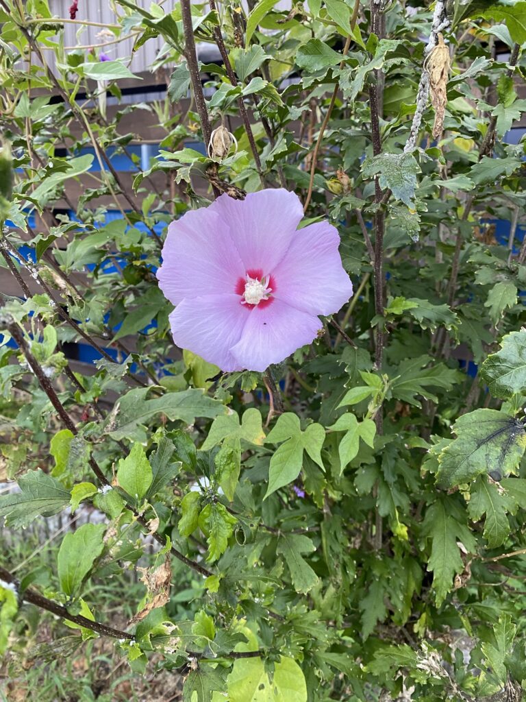 #むくげ 4月19日発芽、開花、貝殻虫繁殖、