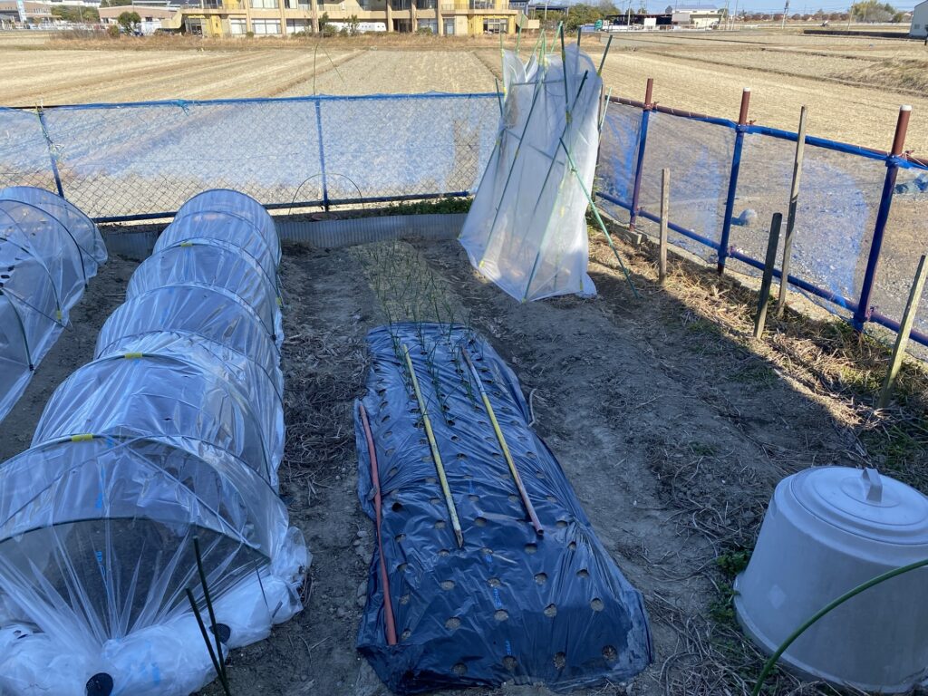 #玉ねぎ②  10月13日播種、10月14日播種、11月16日定植、12月13日ビニールシート敷設、12月16日ビニールシート敷設、