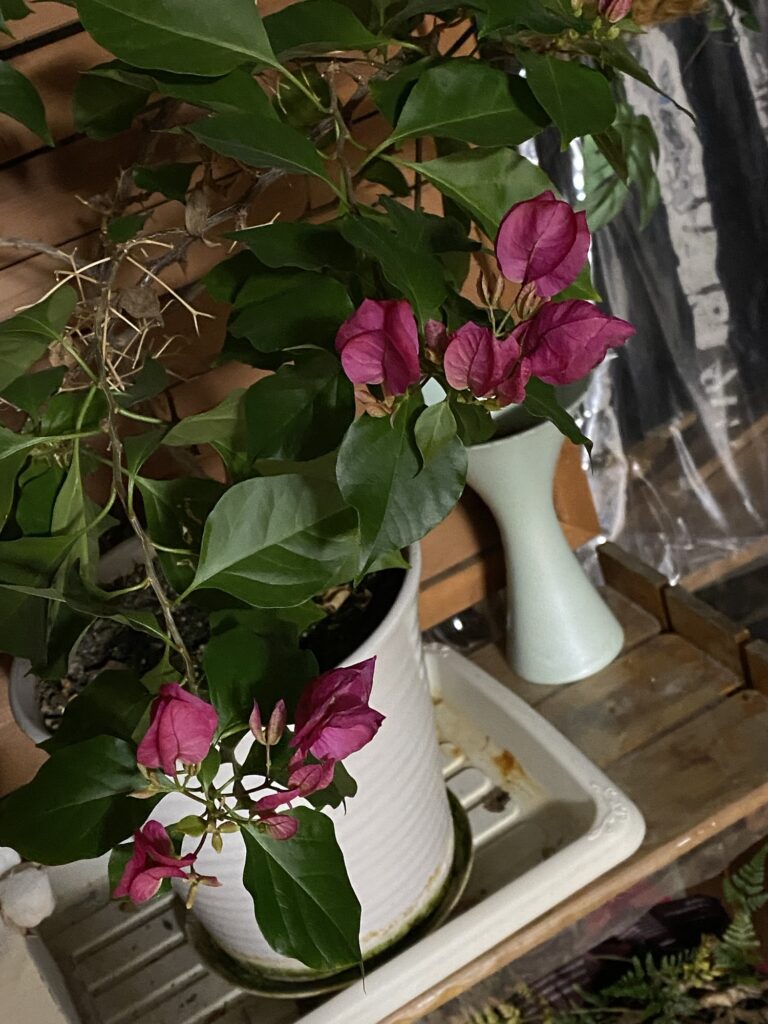 #むくげ 4月19日発芽、開花、貝殻虫繁殖、12月28日剪定、