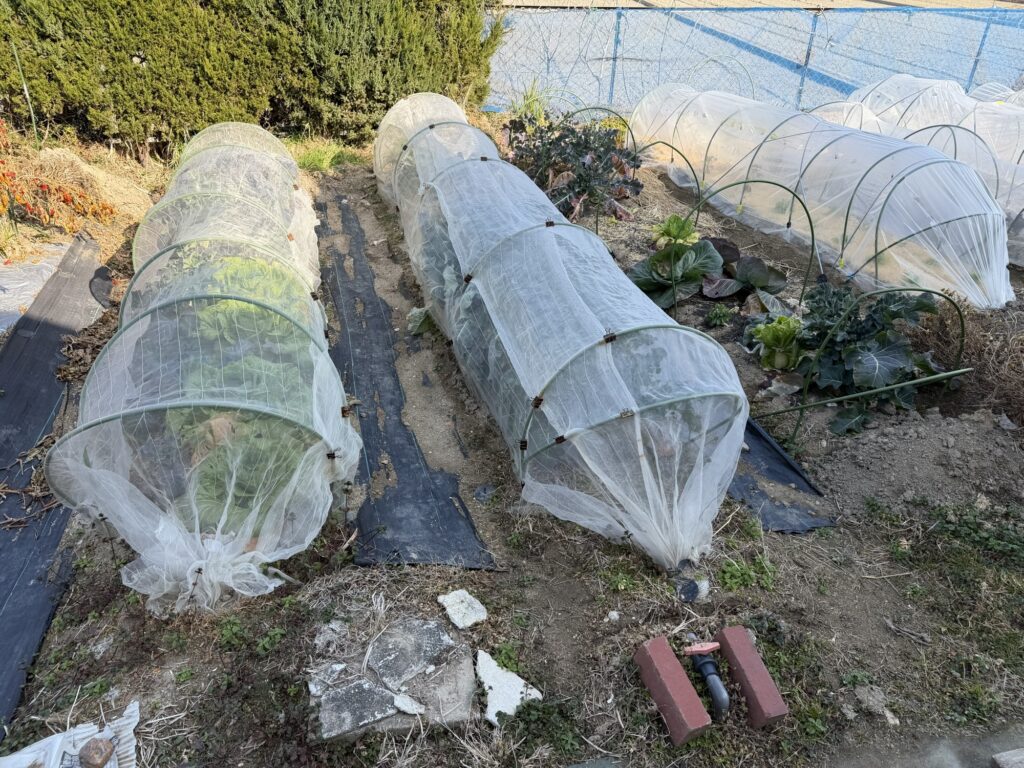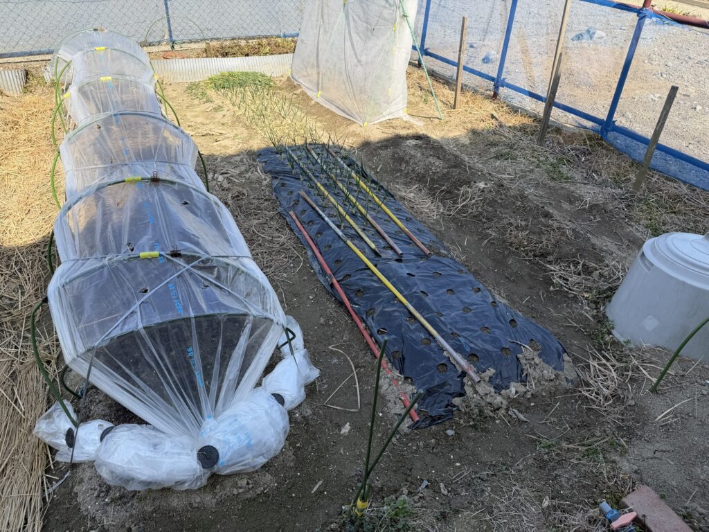 #玉ねぎ② 10月13日播種、10月14日播種、11月16日定植、12月13日ビニールシート敷設、12月16日ビニールシート敷設、